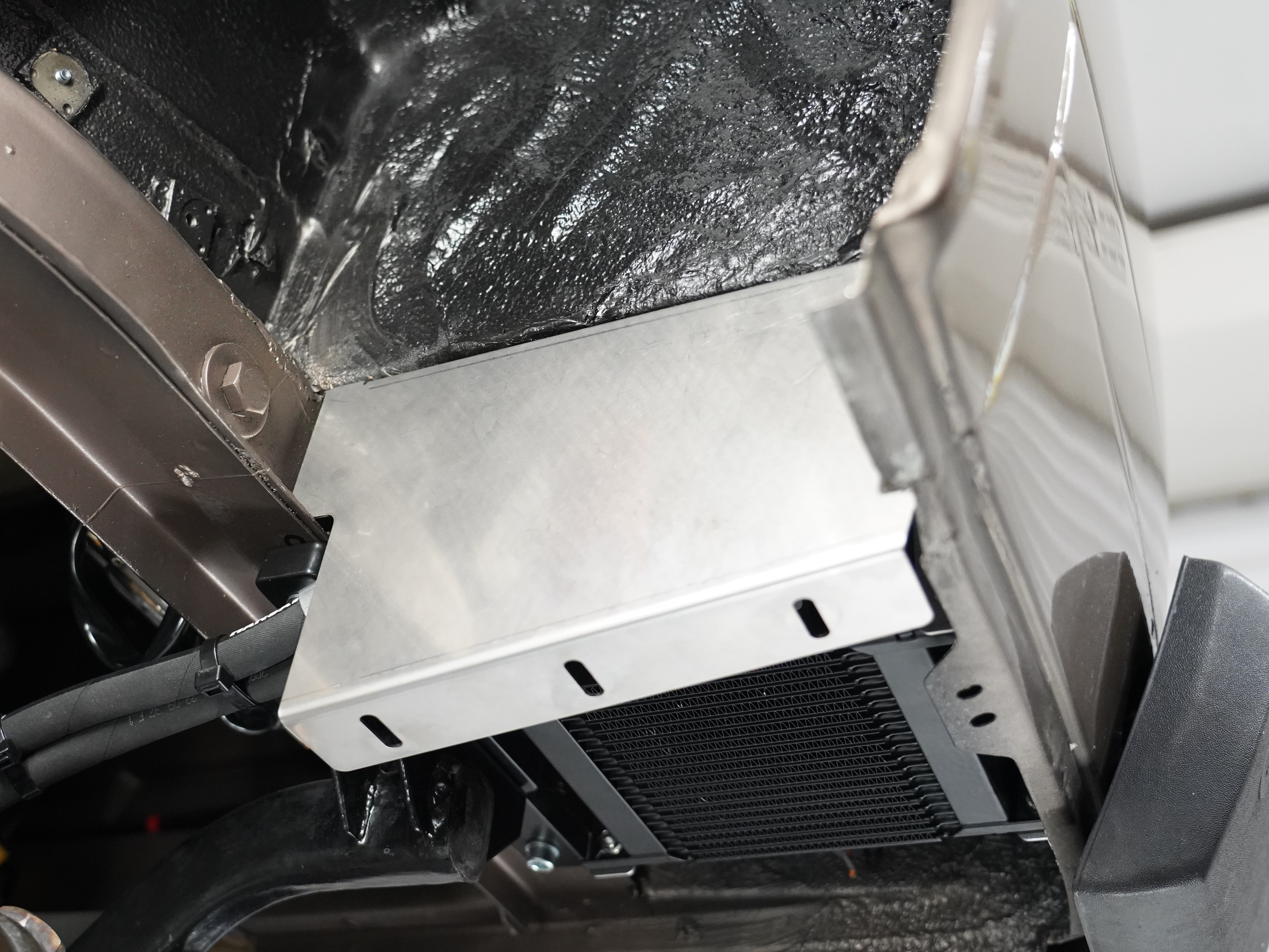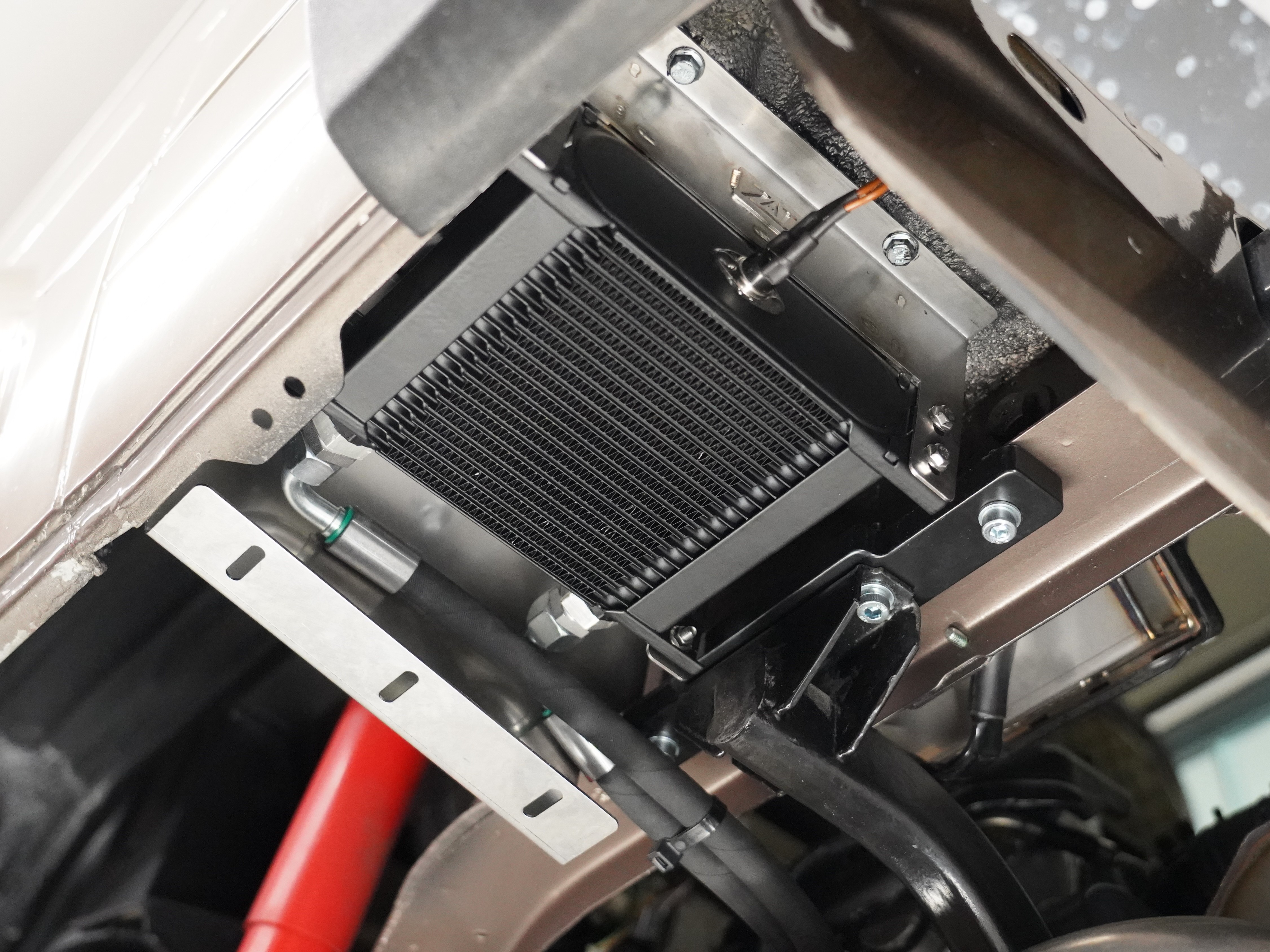 Die Dimensionen der Leitungen und des Ölkühlers entsprechen weitestgehend den werkseitig verbauten Ölkühlern in den Spitzenmodellen Spec-C/Type RA. Durch die Montage im Fahrzeugheck verhindert man unnötig lange Wege und reduziert wirksam mögliche Scheuerstellen der Leitungen an der Karosse. Der eigentliche Hauptvorteil ist der Gewinn von wertvollem Platz an der Fahrzeugfront, um bei Turboumbauten mit wassergekühltem Ladeluftkühler den Wärmetauscher unterzubringen. Das Set besteht aus einem 19 Reihen Ölkühler, einem Edelstahlgehäuse zur Aufnahme des Ölkühlers, einem Abdeckblech zum Schutz vor Steinschlag sowie einer Schablone für den Ausschnitt am Fahrzeug. Bitte beachten, dass zur Montage im Fahrzeug ein Ausschnitt erstellt werden muss. Eine Schablone zum Anzeichnen liegt der Lieferung bei.
